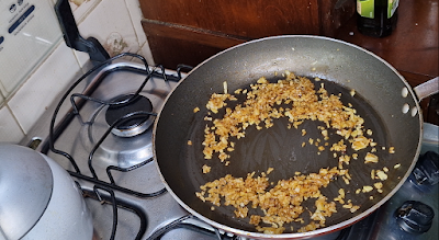 - 1 cebola fatiada em 1/2 lua bem fininha